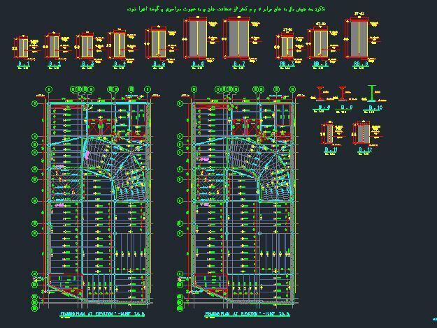 فایل اتوکد سازه 18 طبقه فولادی ، 7 طبقه زیرزمین به روش مهار متقابل (90 شیت)